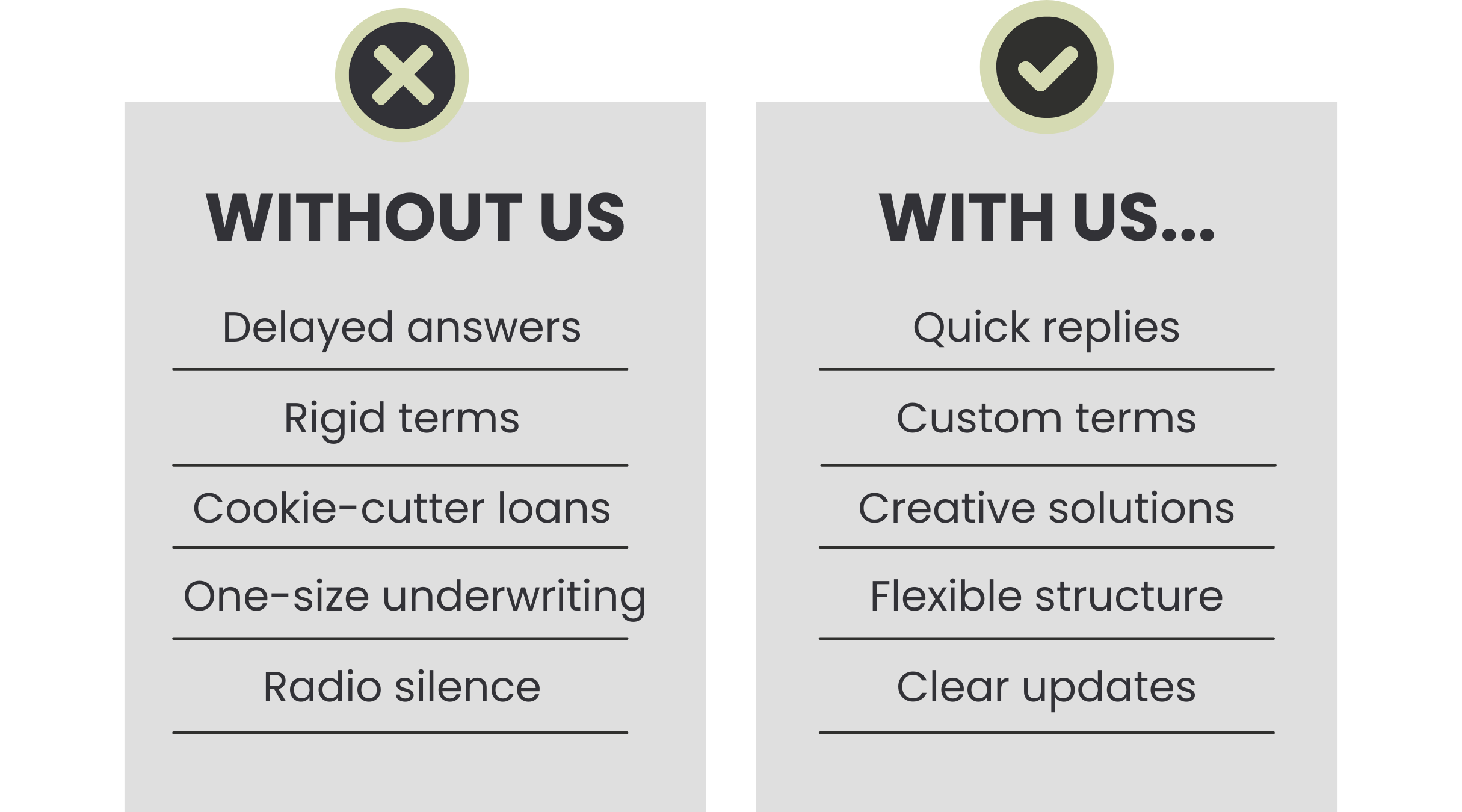 Brokers can count on us to provide the right structure, communicate clearly, and deliver lending solutions that keep deals on track.